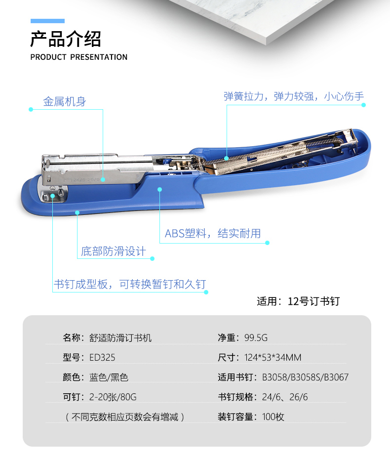 齊心B2982舒適防滑訂書機12# 20頁*12