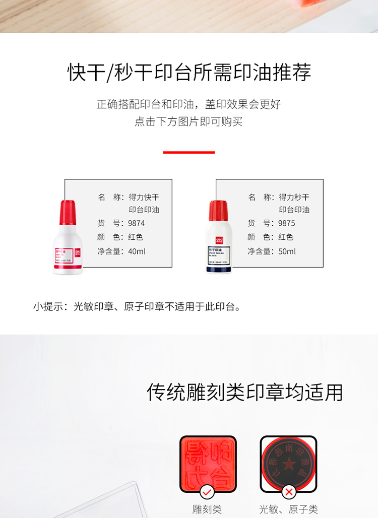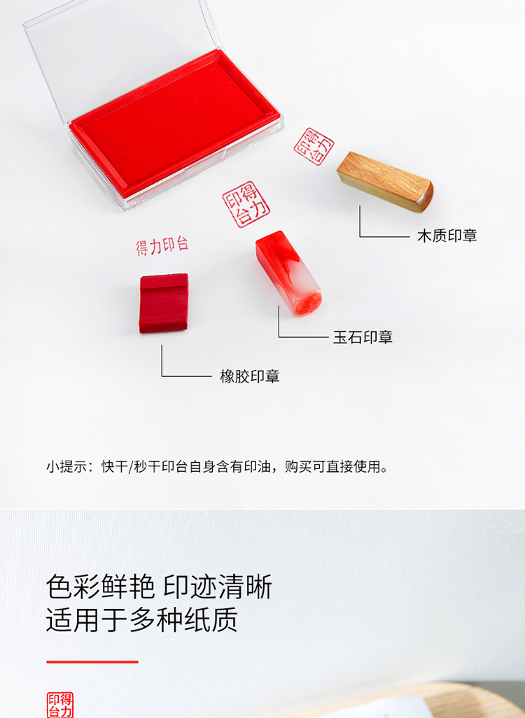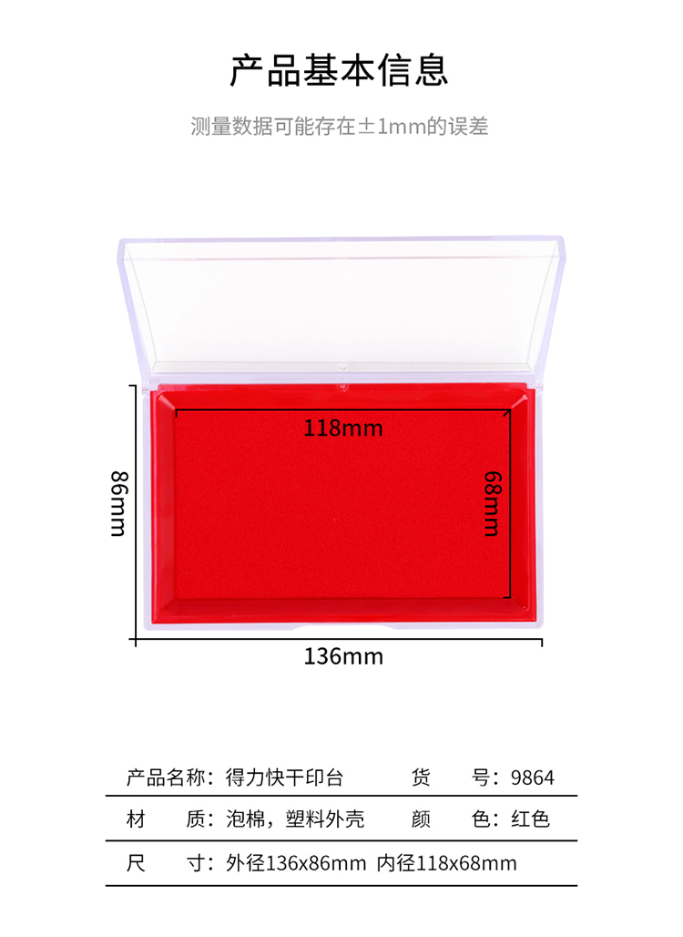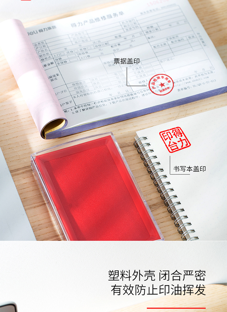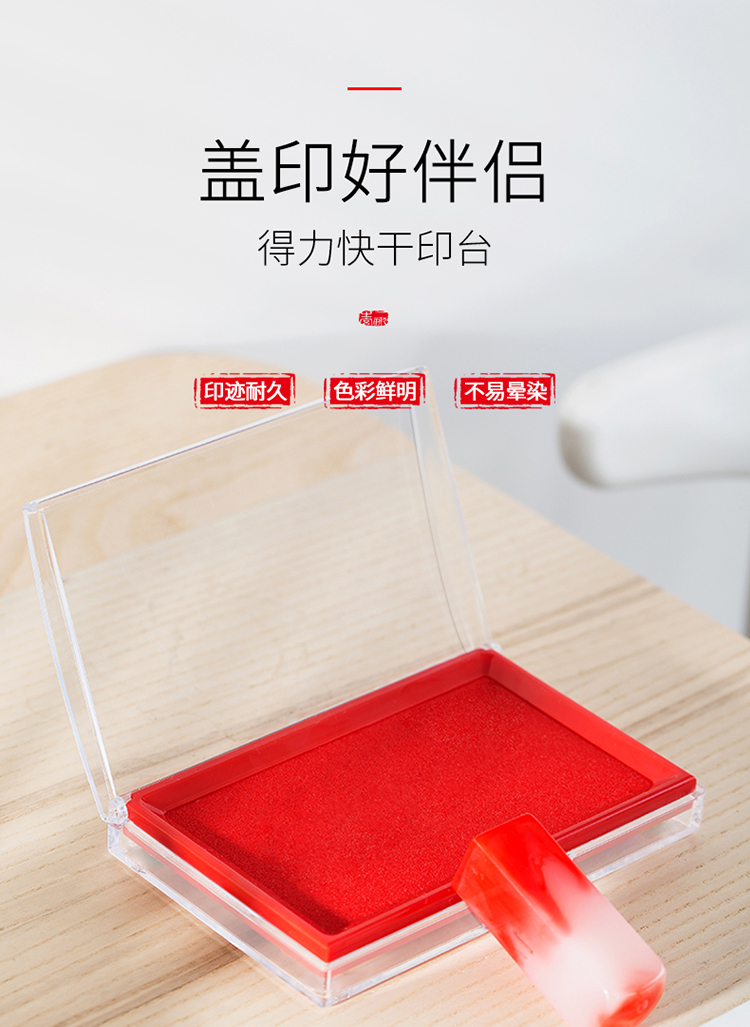 得力9893方形鐵蓋秒干印臺143x87mm(紅)