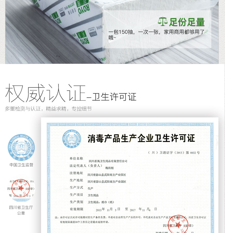 包裝數(shù)量 : 150抽/包 20包/箱