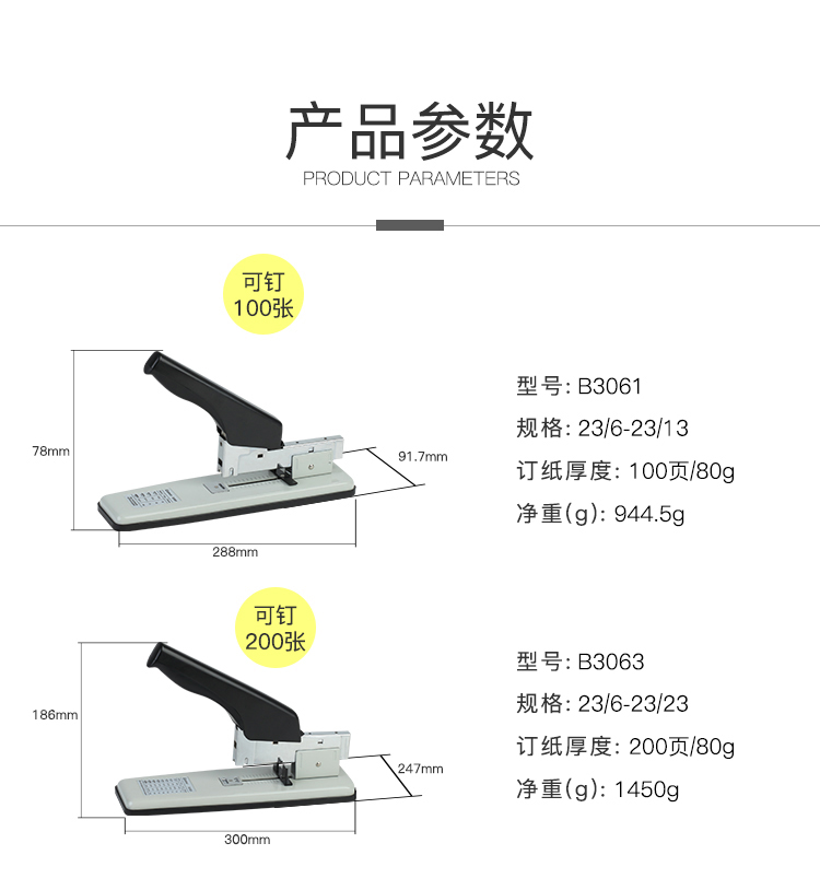 齊心B3061重型訂書機100頁*3