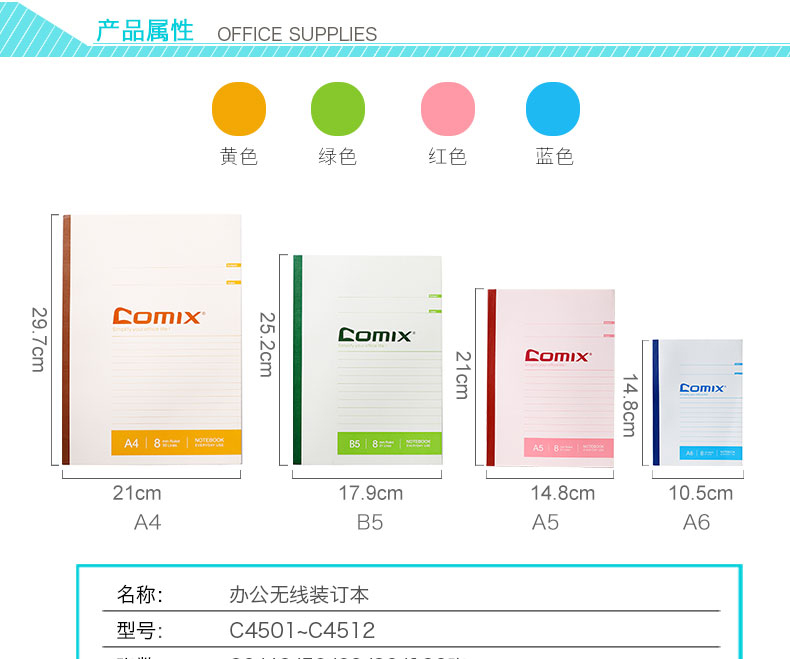 齊心C4509辦公必備無線裝訂本B5 50張*12