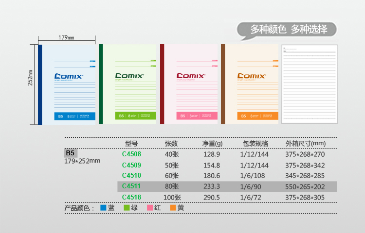 齊心C4509辦公必備無線裝訂本B5 50張*12