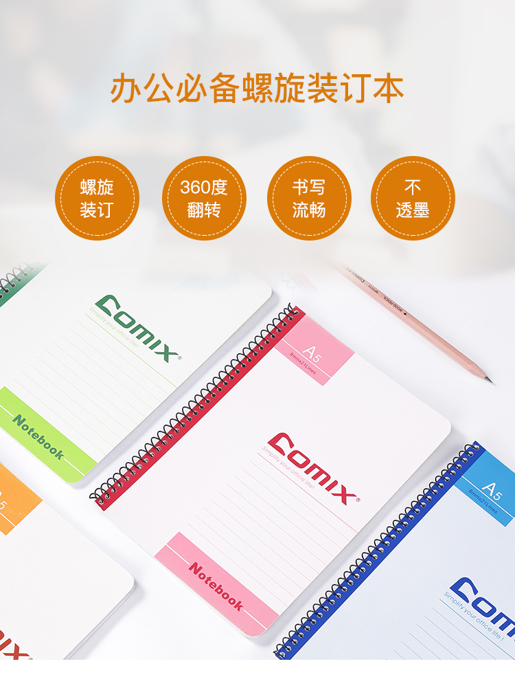 齊心C4515螺旋裝訂筆記本A5 80頁*6