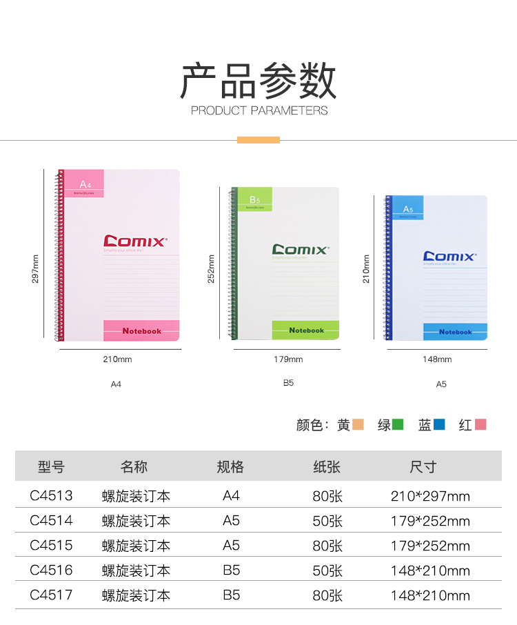齊心C4516螺旋裝訂筆記本B5 50頁*24