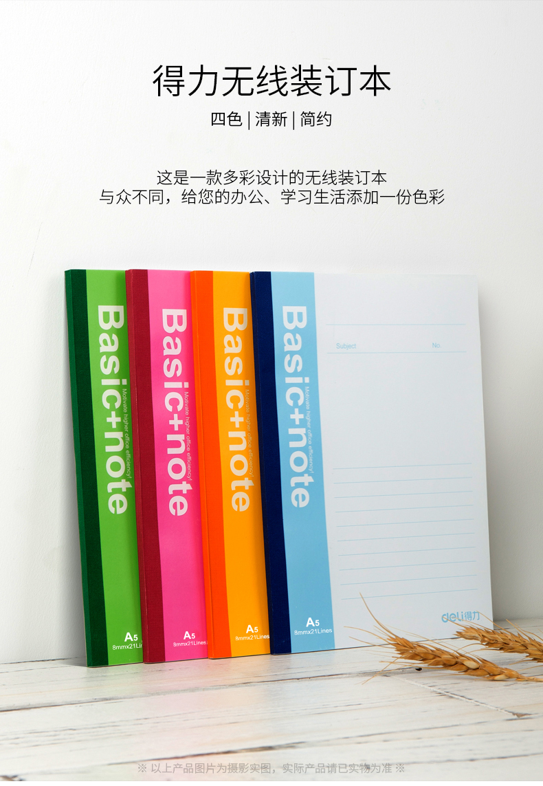得力7654辦公無線裝訂本(混)-80張-A5*6