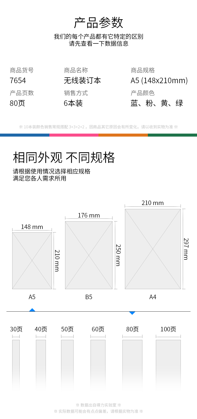 得力7658辦公無線裝訂本(混)-60張-A4*10 B