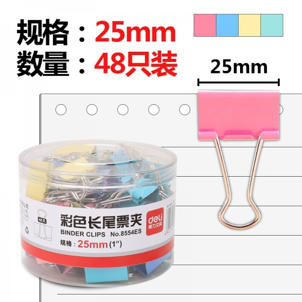 得力8554ES彩色長尾票夾筒裝25mm*48只/筒