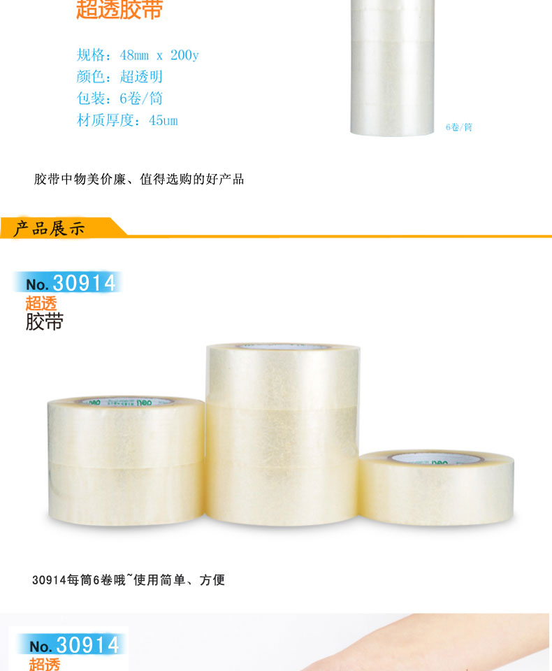 得力品正30912封箱膠帶48mm*100y*45um(6卷/筒)(普透)