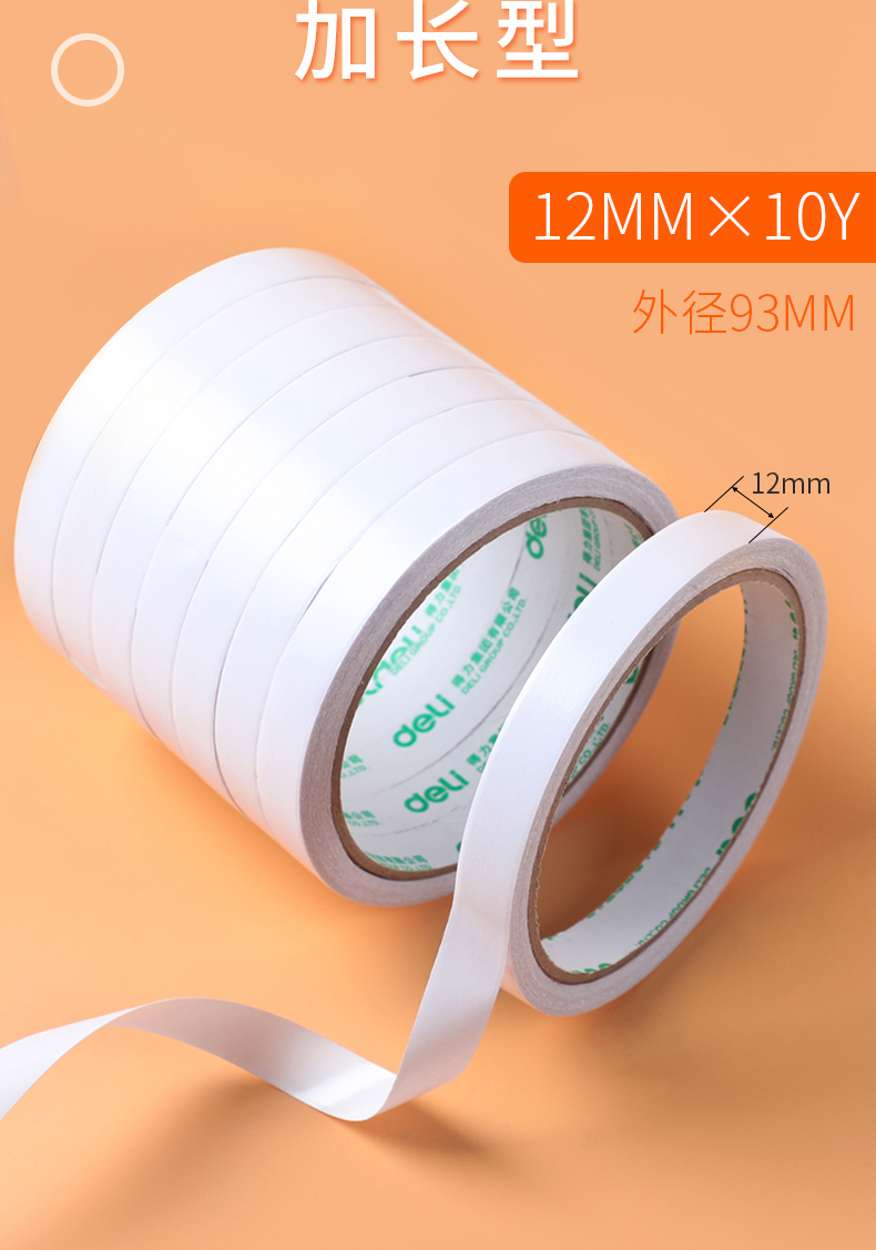 得力30401棉紙雙面膠帶12mm*10y*80um*24卷/袋