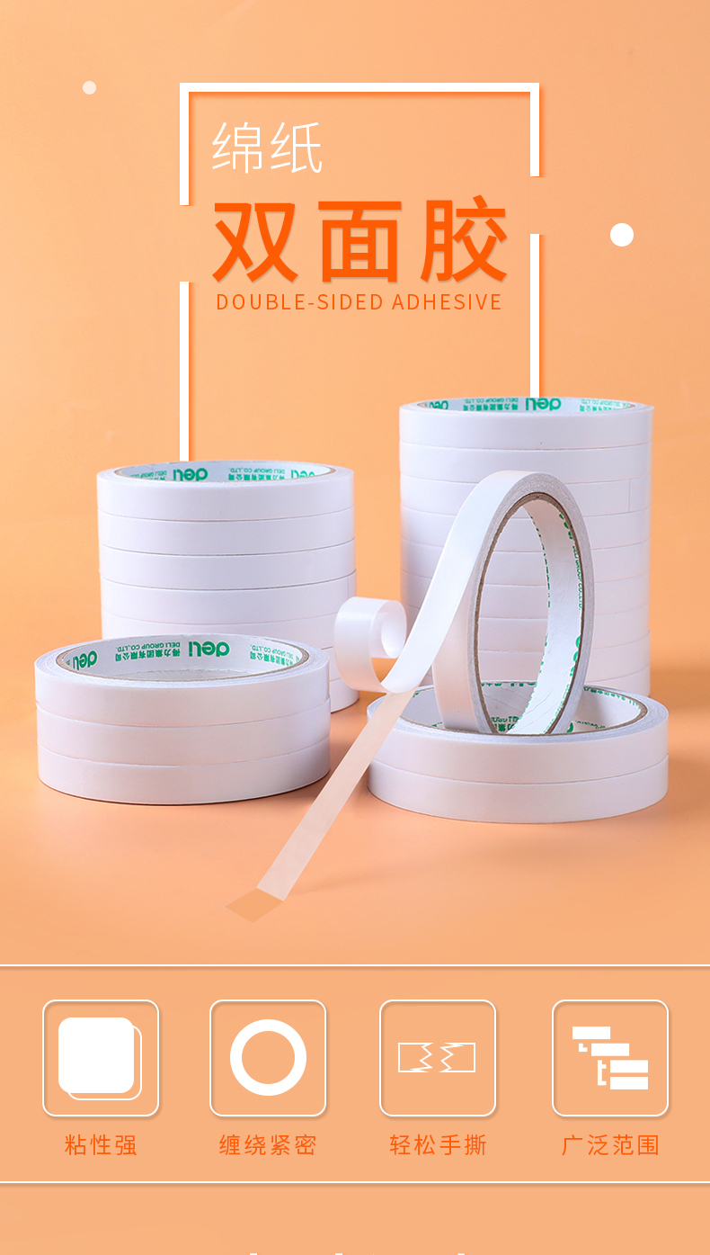 得力30400棉紙雙面膠帶9mm*10y*80um*32卷/袋