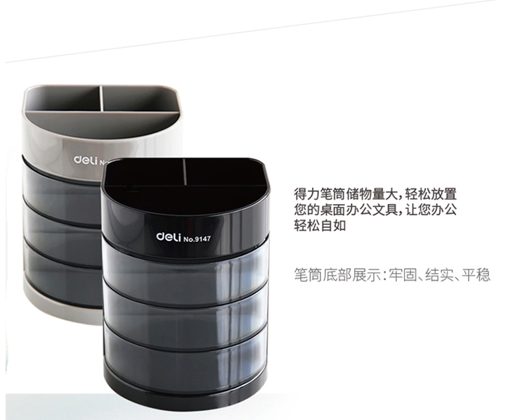 得力909圓形金屬網格筆筒黑φ80*100mm