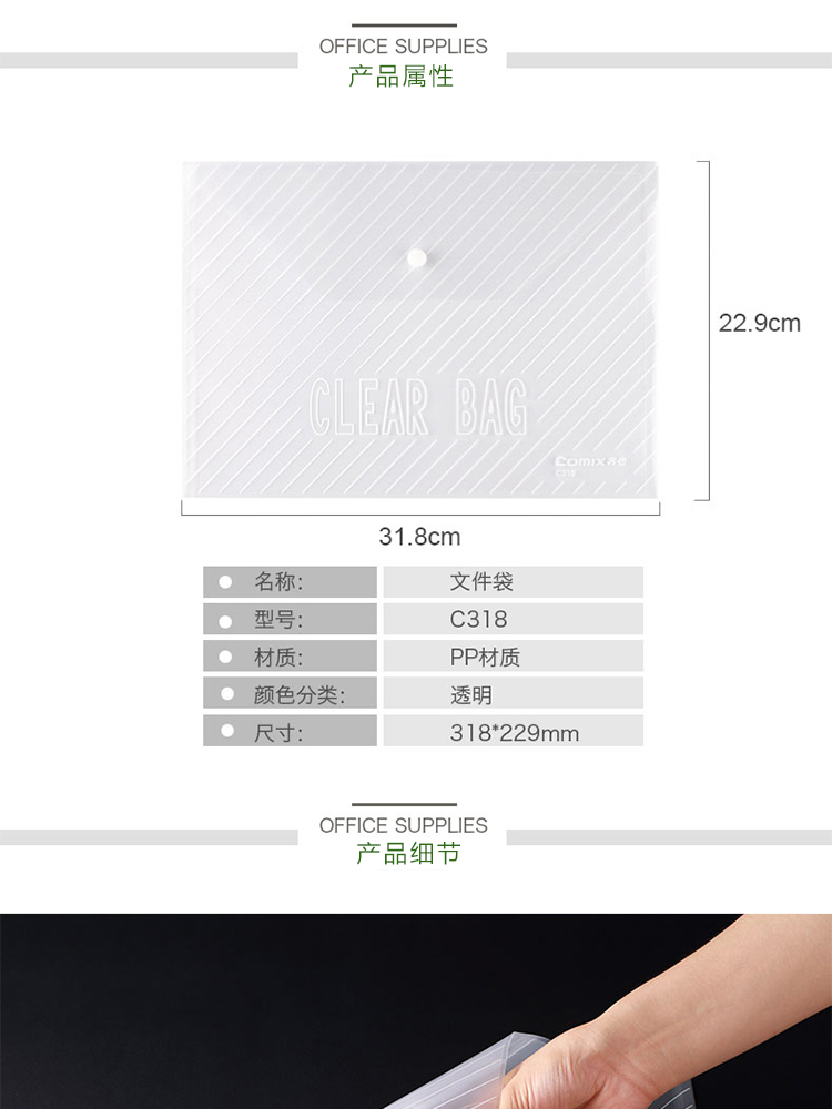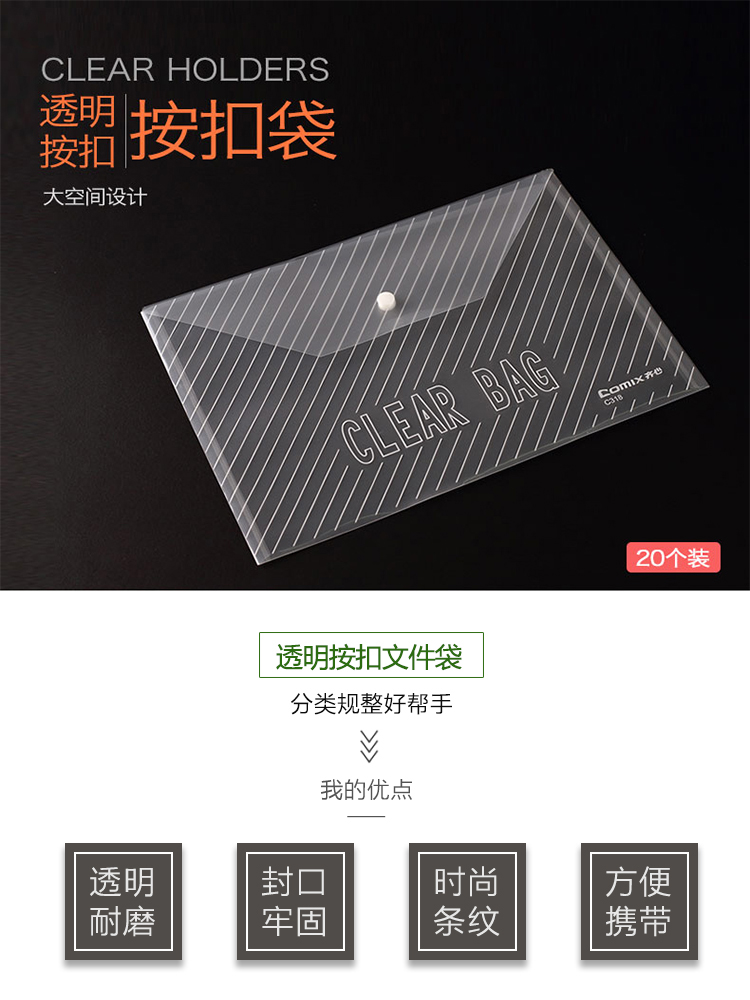 齊心C318按扣文件袋20個(gè)/袋 白色*400