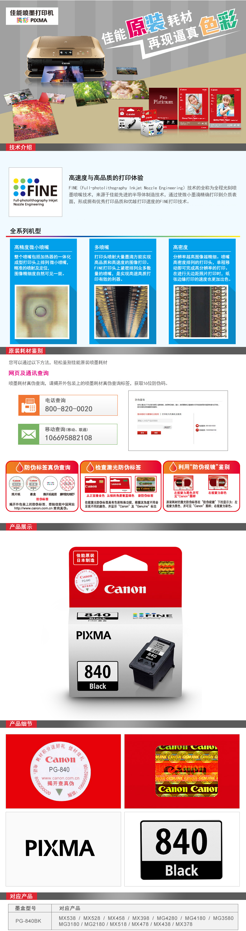 佳能PG-840墨盒黑色(適MG36800)
