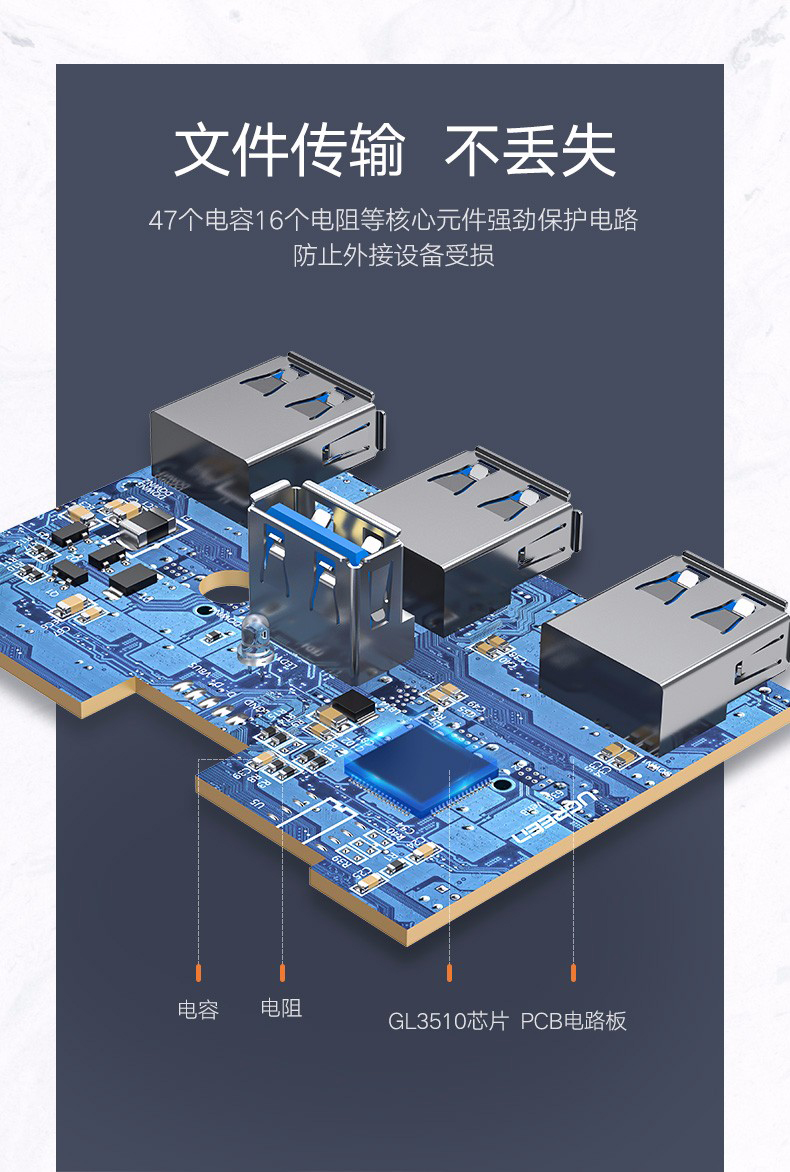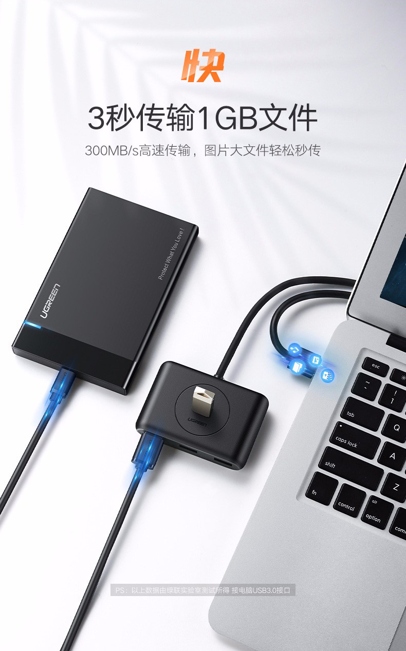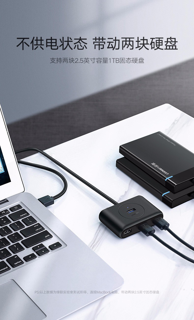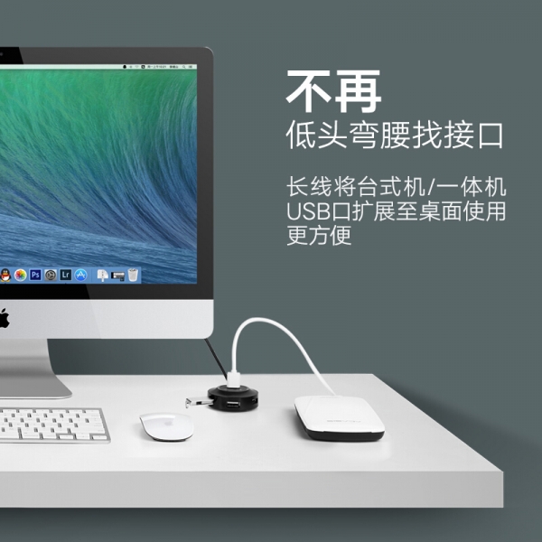 綠聯USB3.0分一拖四集線器延長線1.5米白 30221