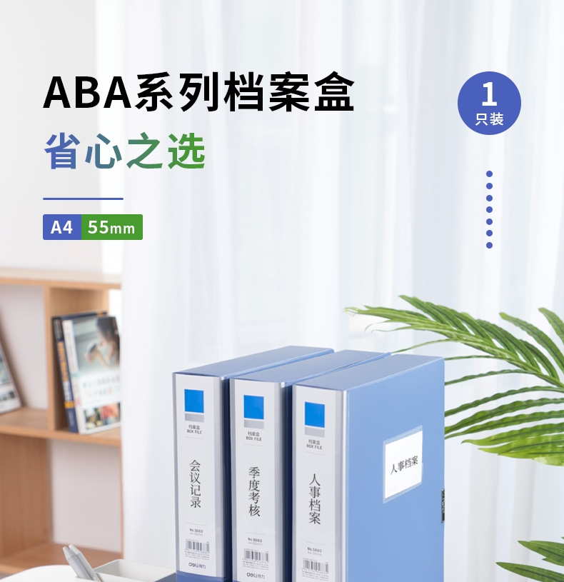 得力5663-55檔案盒-背寬55MM(藍)