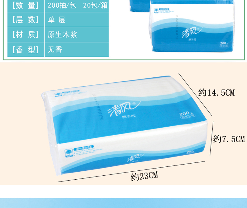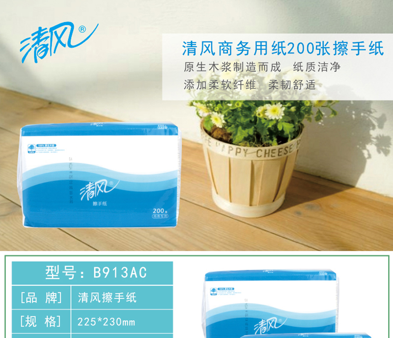 清風舒柔純品1層200張/包*1*20擦手紙B913AS