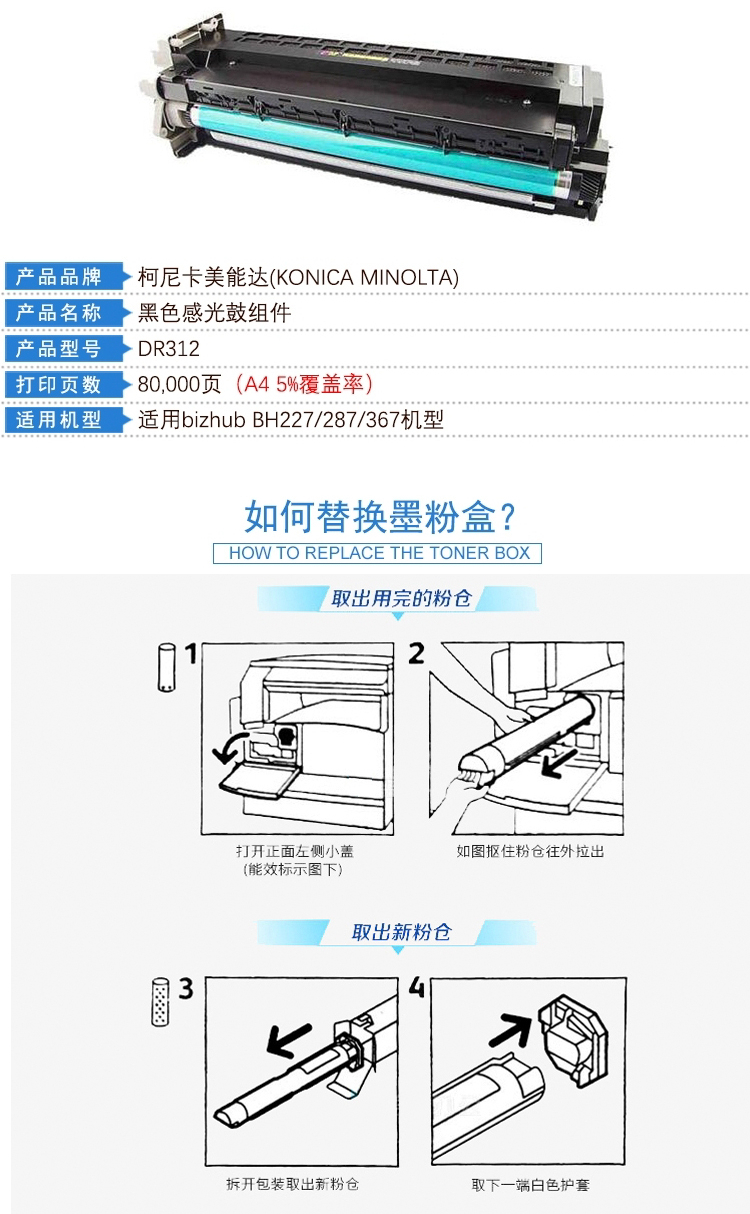 柯尼卡美能達DR312分體鼓