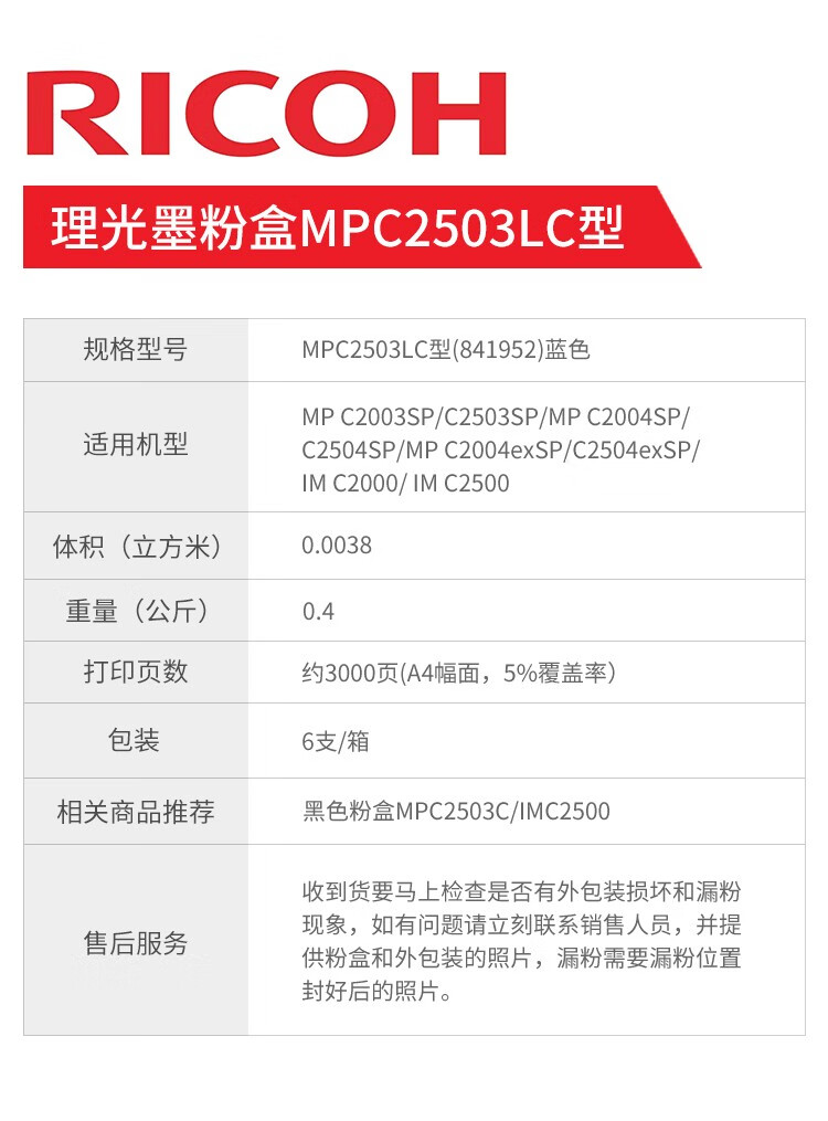 理光MPC2503LC型蘭粉(低容)(841952)