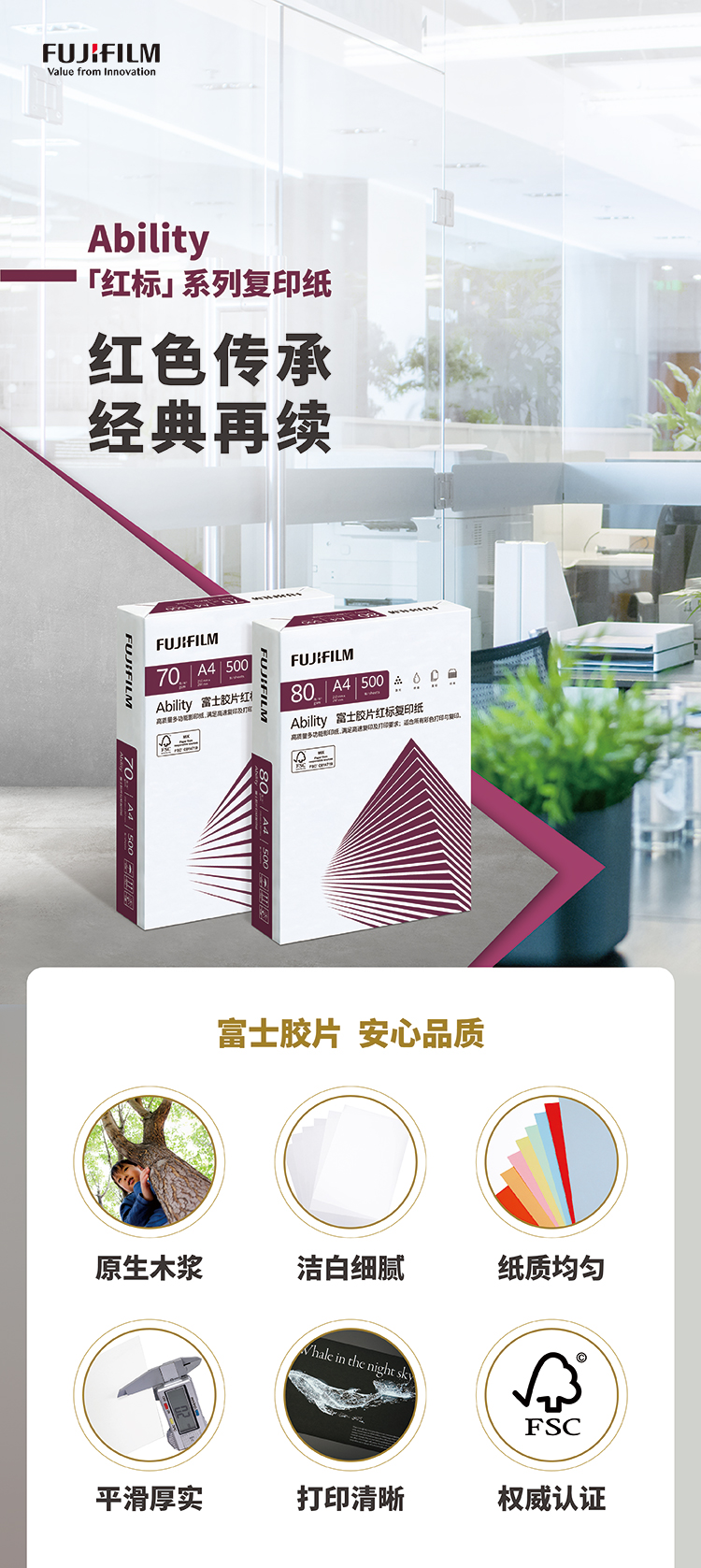 富士膠片金美70g A4復印紙 500張/包 5包/箱(2500張)
