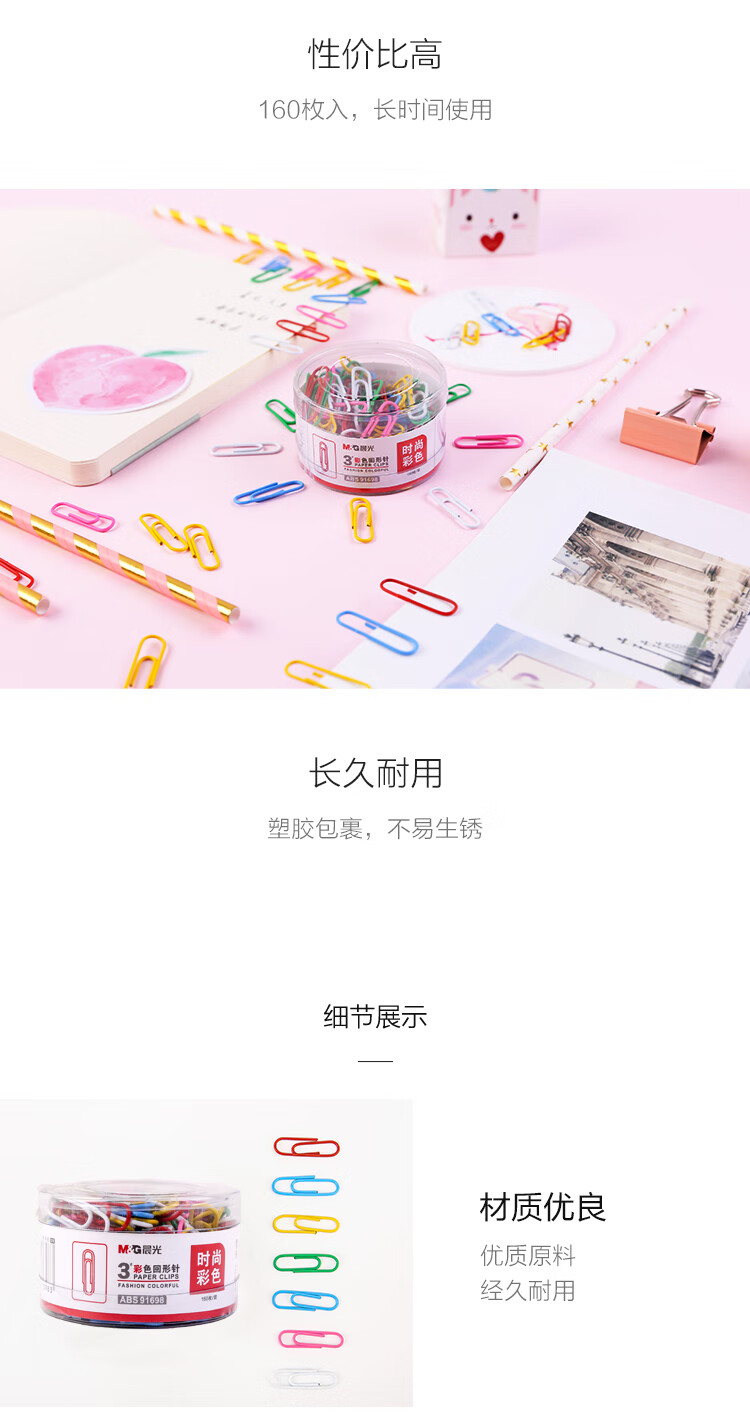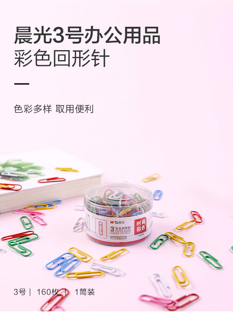 晨光辦公用3號彩色回形針PP盒裝ABS91699*10