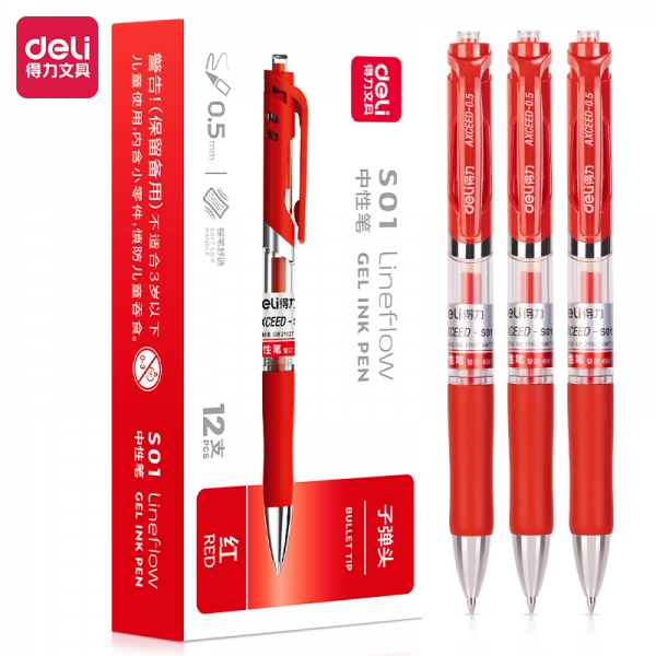 得力S01中性筆0.5mm彈簧頭(紅)*12
