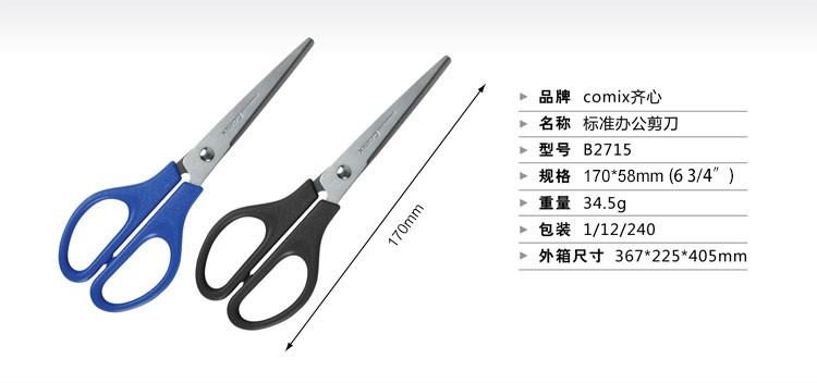 適用類(lèi)型 : 齊心B2715辦公剪刀中號(hào)170mm