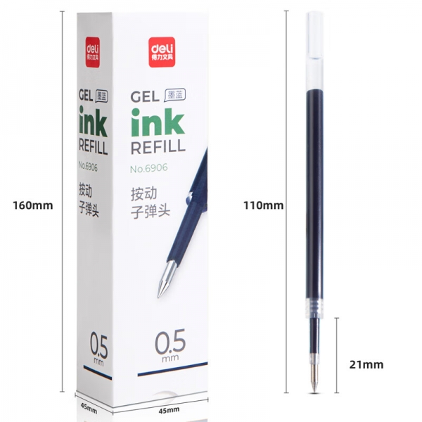 得力6906按鍵式中性筆替芯0.5mm藍色*20支