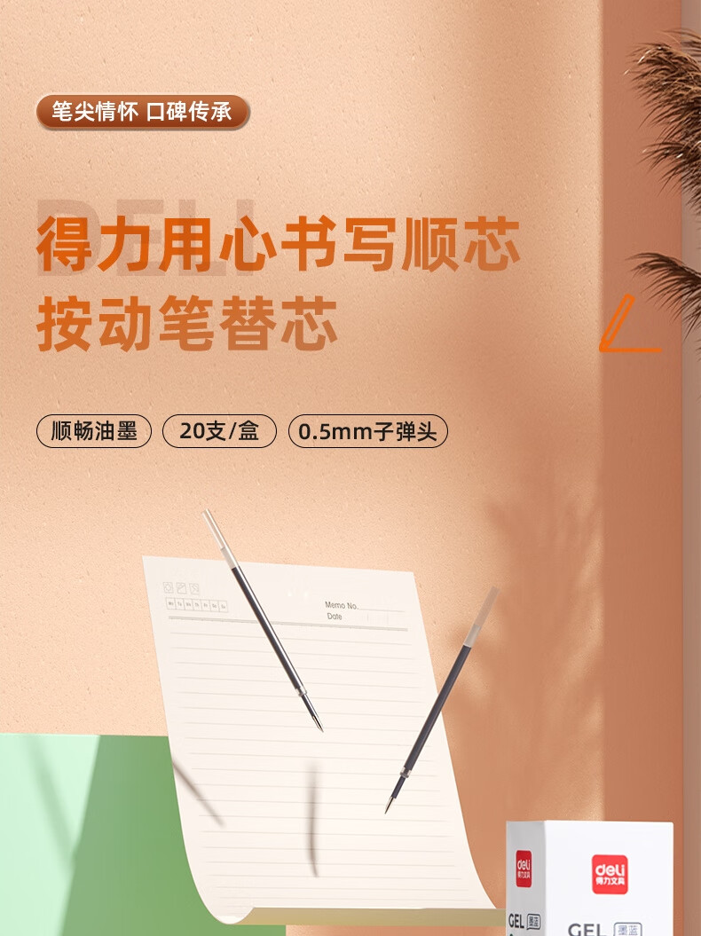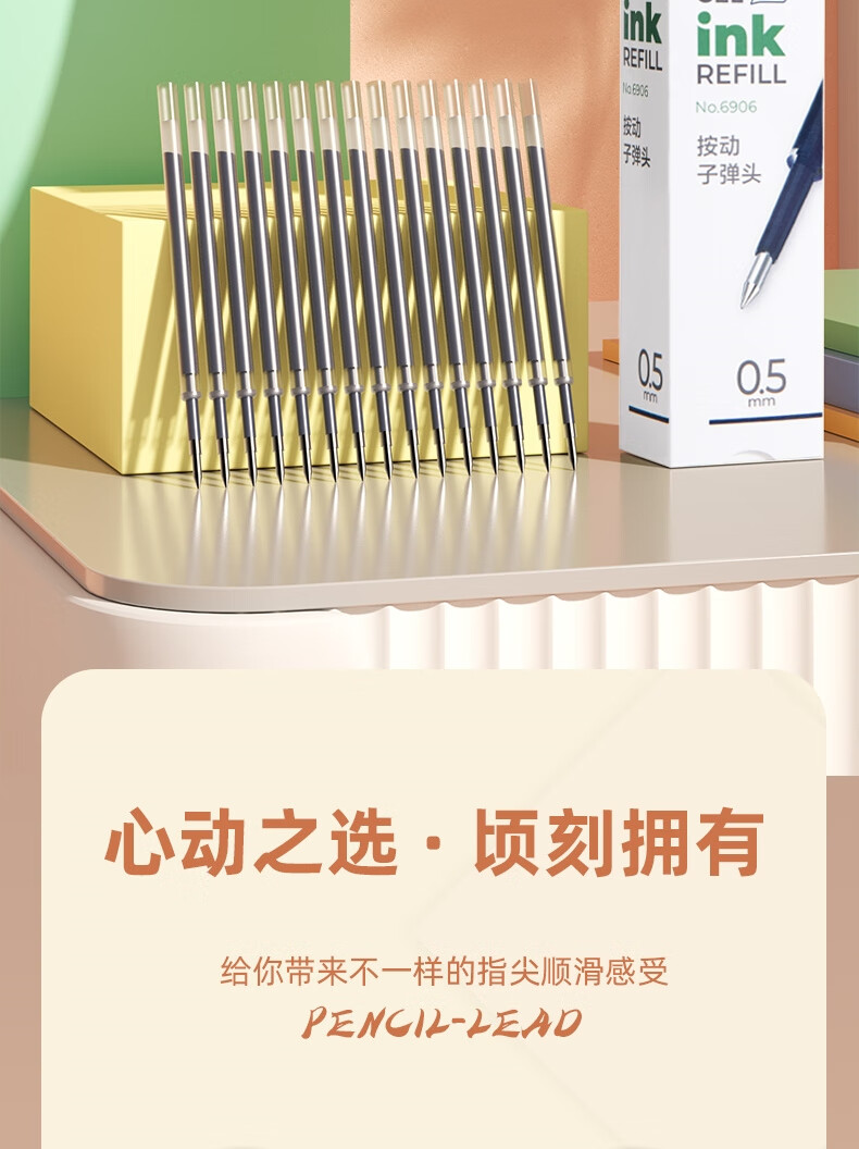 得力6906按鍵式中性筆替芯0.5mm黑色*20支