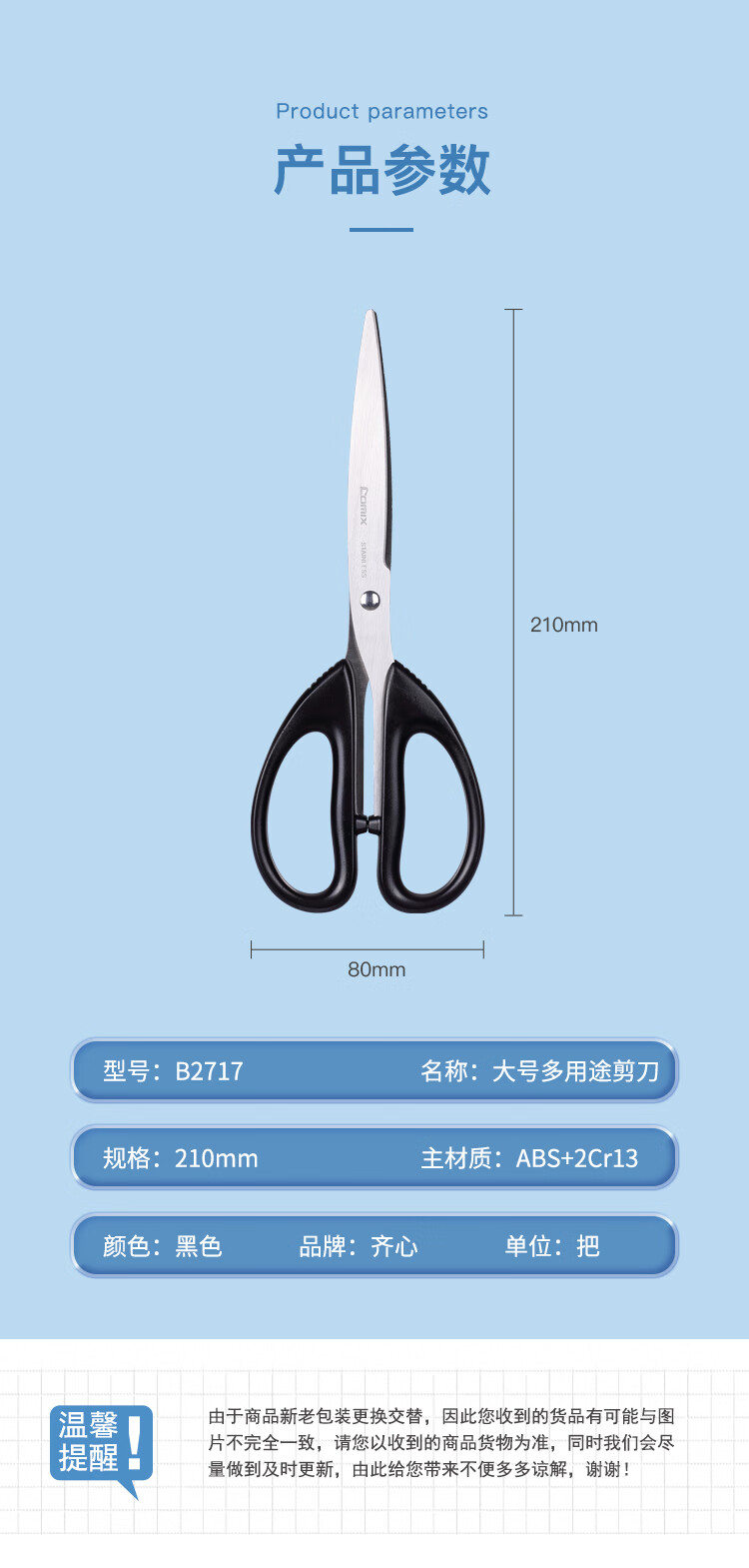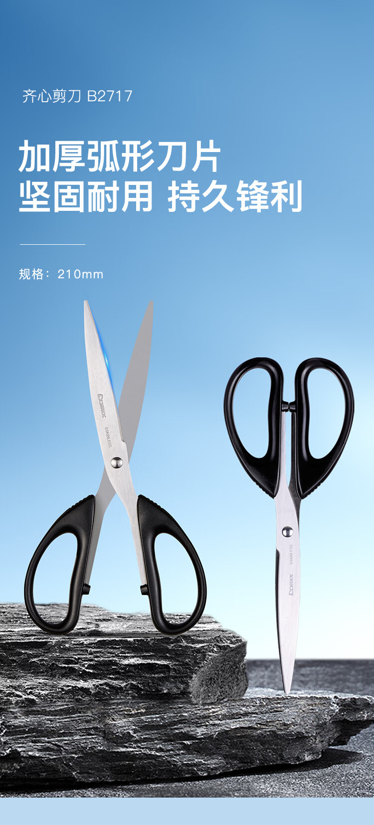 齊心B2717辦公剪刀大號210mm*12