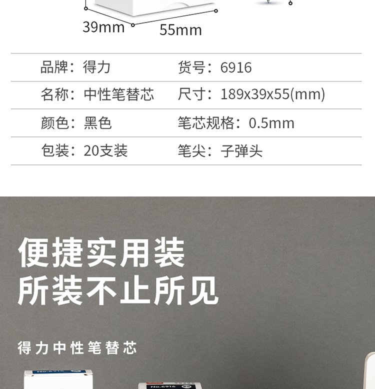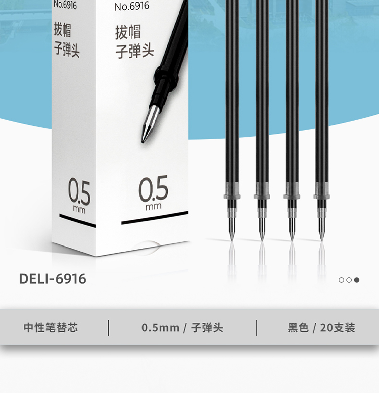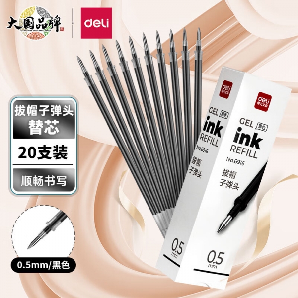 得力6916通用型中性筆替芯0.5mm*20黑色