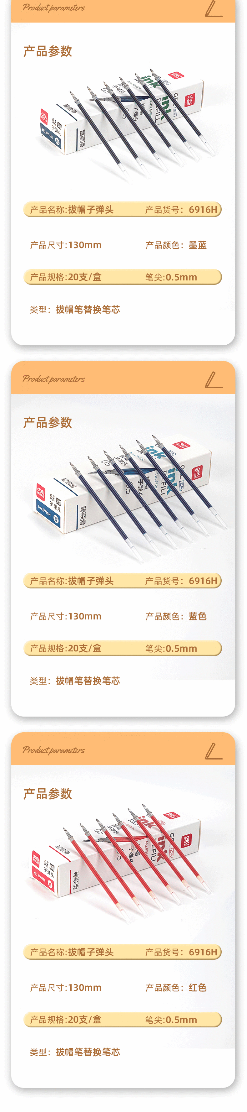得力6906按鍵式中性筆替芯0.5mm紅色*20支