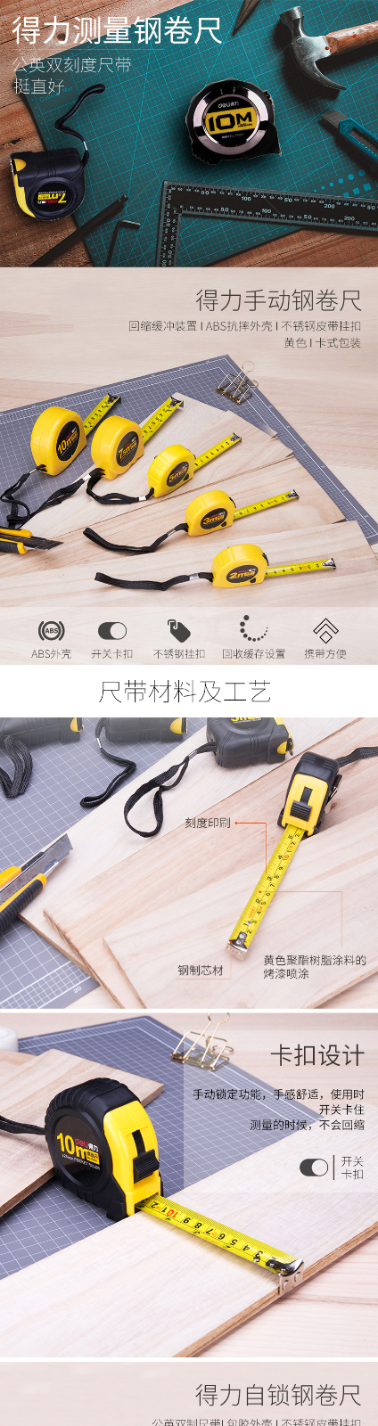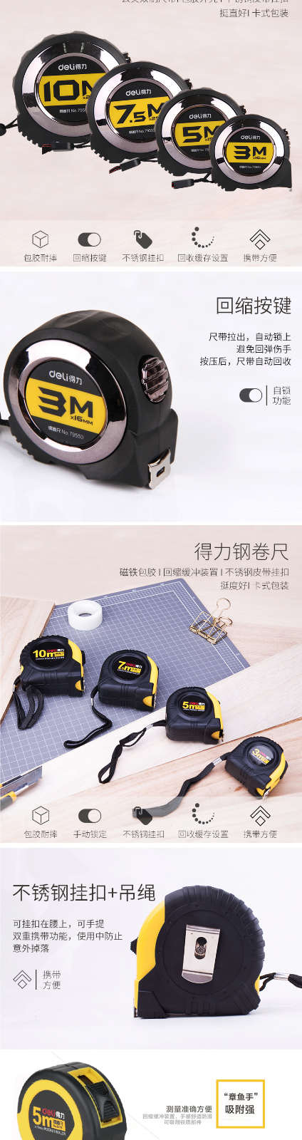 得力8202鋼卷尺3m(黃)