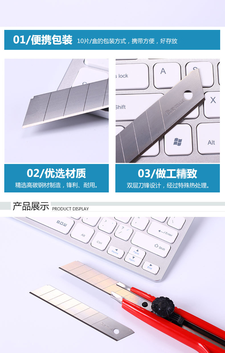 齊心B2852美工刀片18mm*10片/盒*24