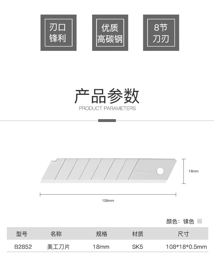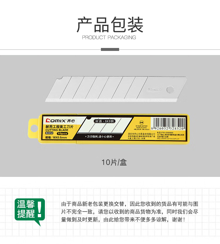 齊心B2851小號美工刀片9mm*10片/盒*40