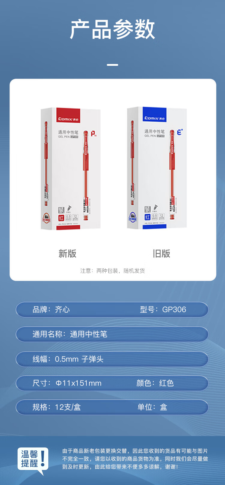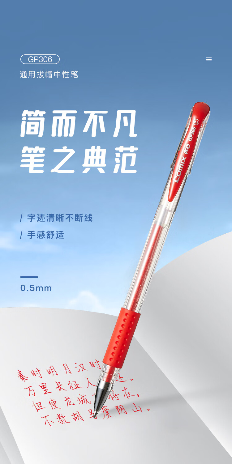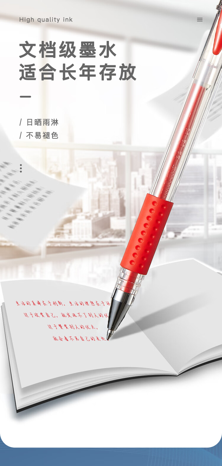 齊心K3511舒適按動中性筆0.5mm紅*12