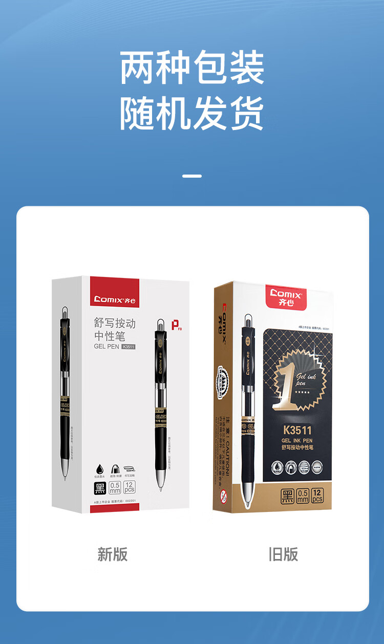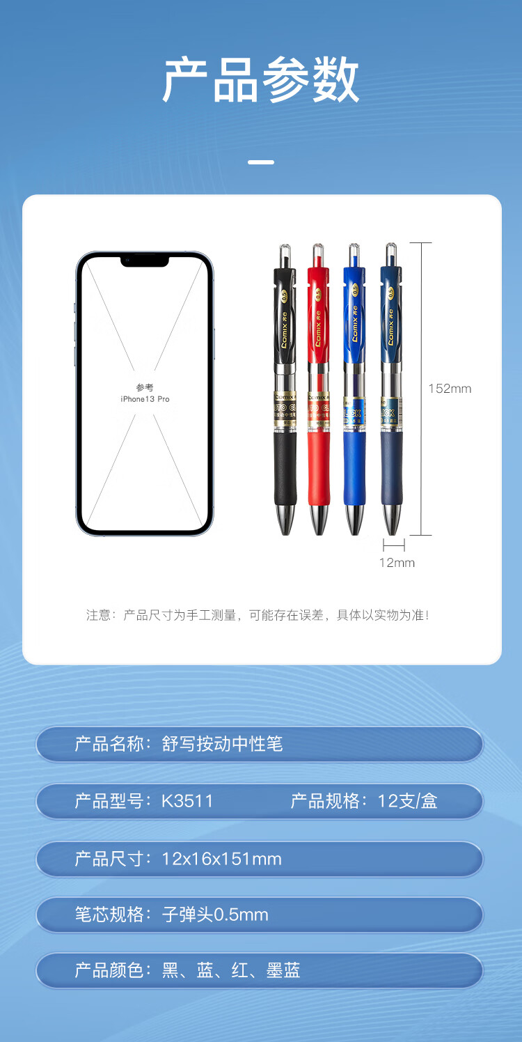 齊心K3511舒適按動中性筆0.5mm藍*12