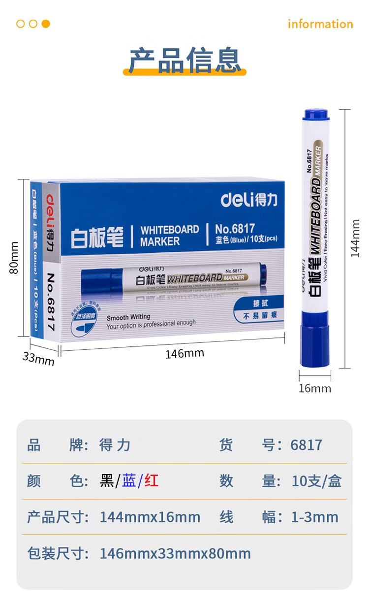 得力 記號筆 6821 黑色 藍色 紅色 1.5mm