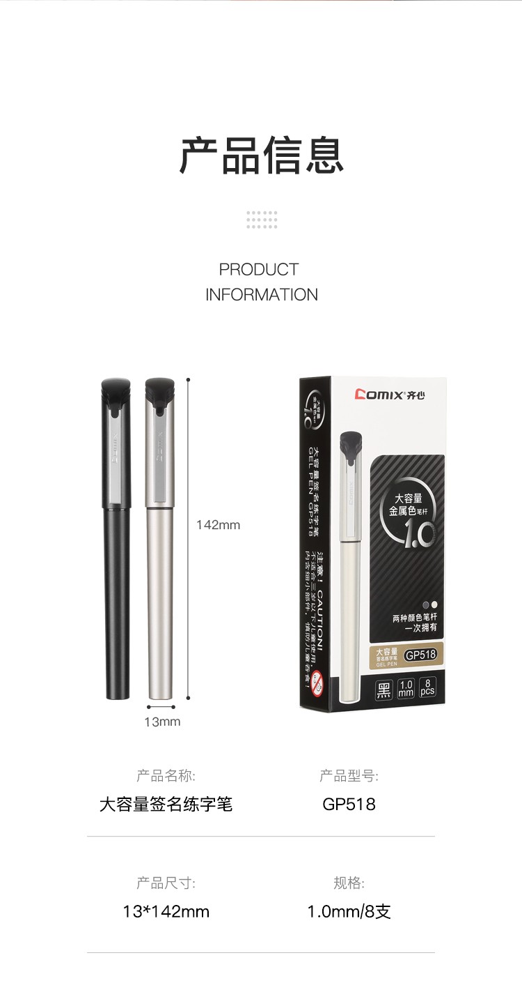 齊心K5511速干按動中性筆0.5mm黑*8支