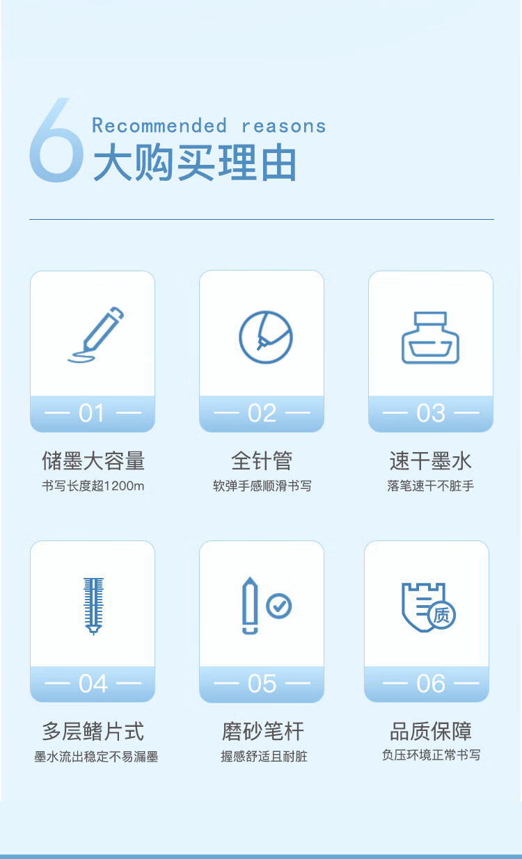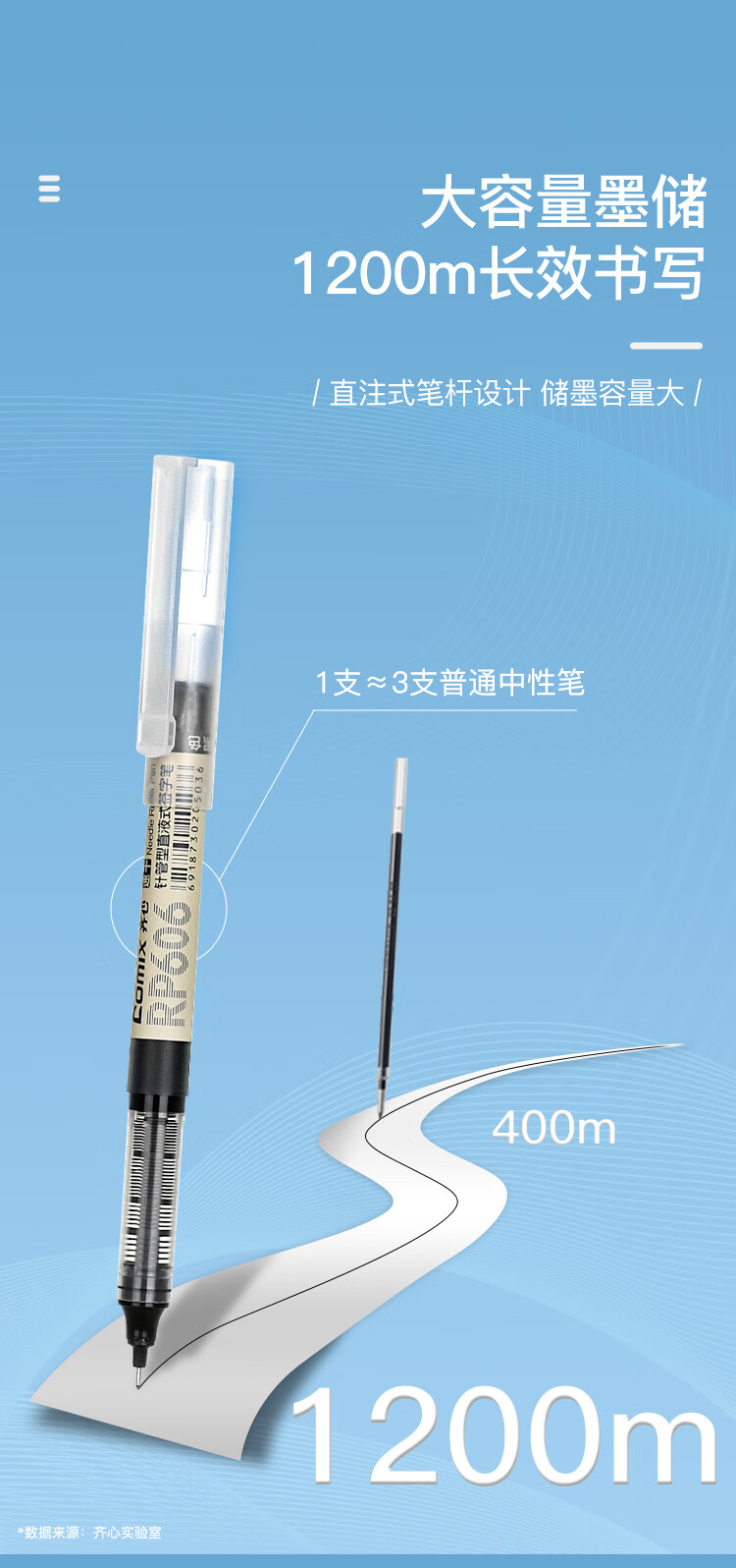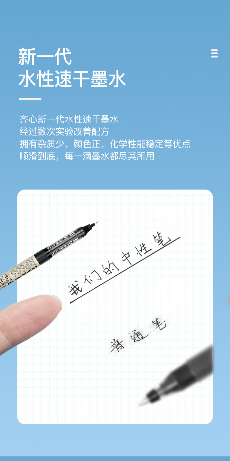 齊心RP606直液式全針管簽字筆藍0.5mm*10