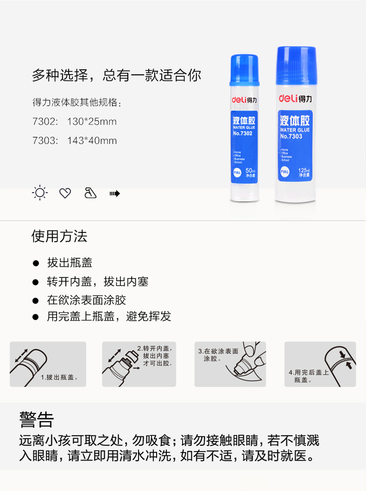 得力優酷7301液體膠水(無色)(35ml/瓶)