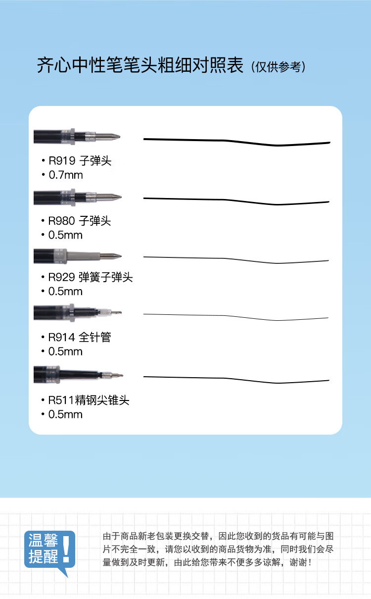 齊心R929經典按動中性筆替芯黑0.5mm*20