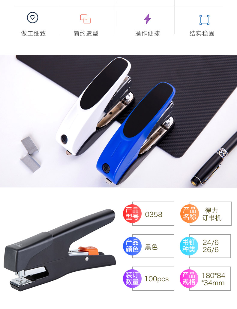得力0390重型省力訂書機100頁(黑)