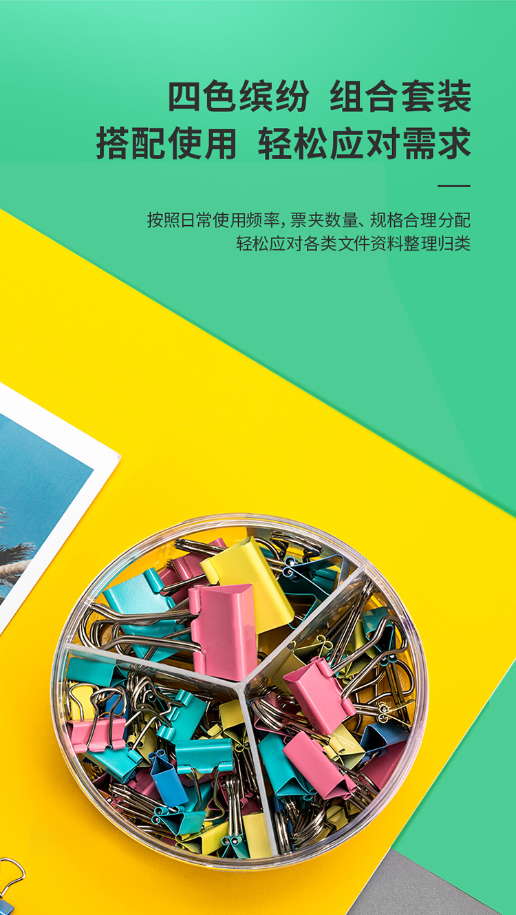 得力8521彩色長尾票夾套裝(混)(82只/筒)