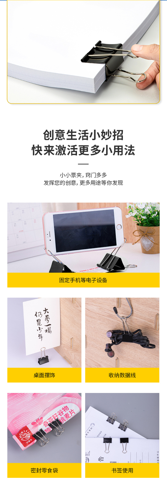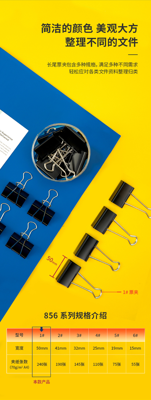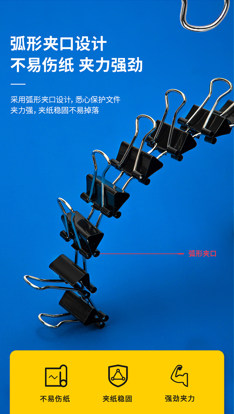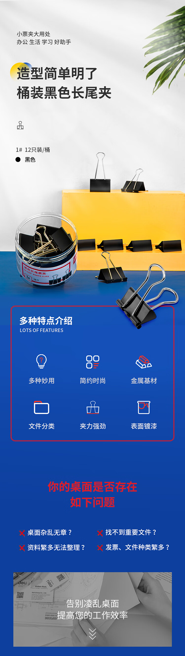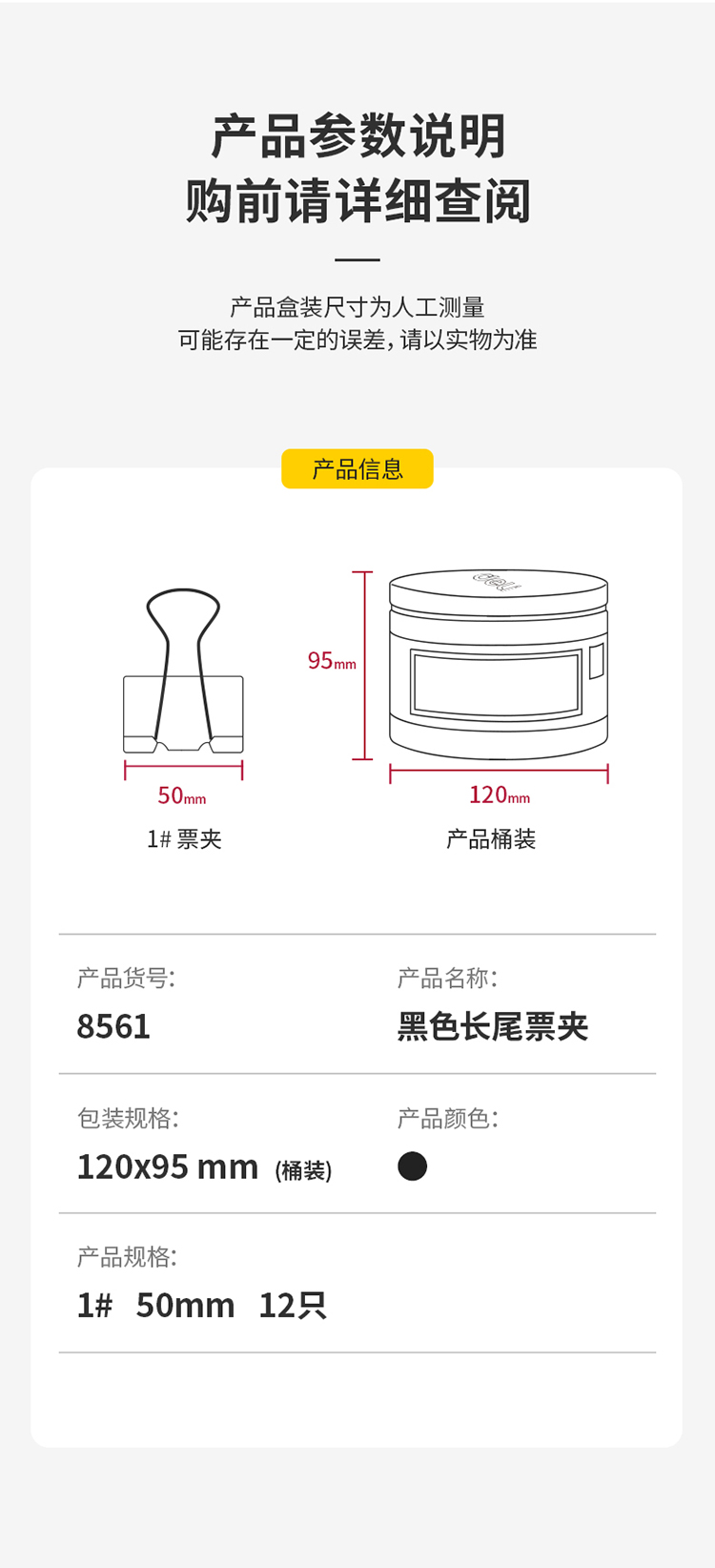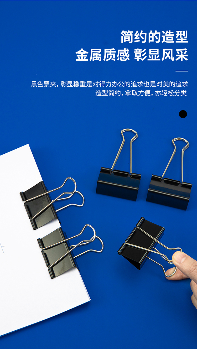 得力8561-1#黑色長尾票夾筒裝51mm*12只/筒