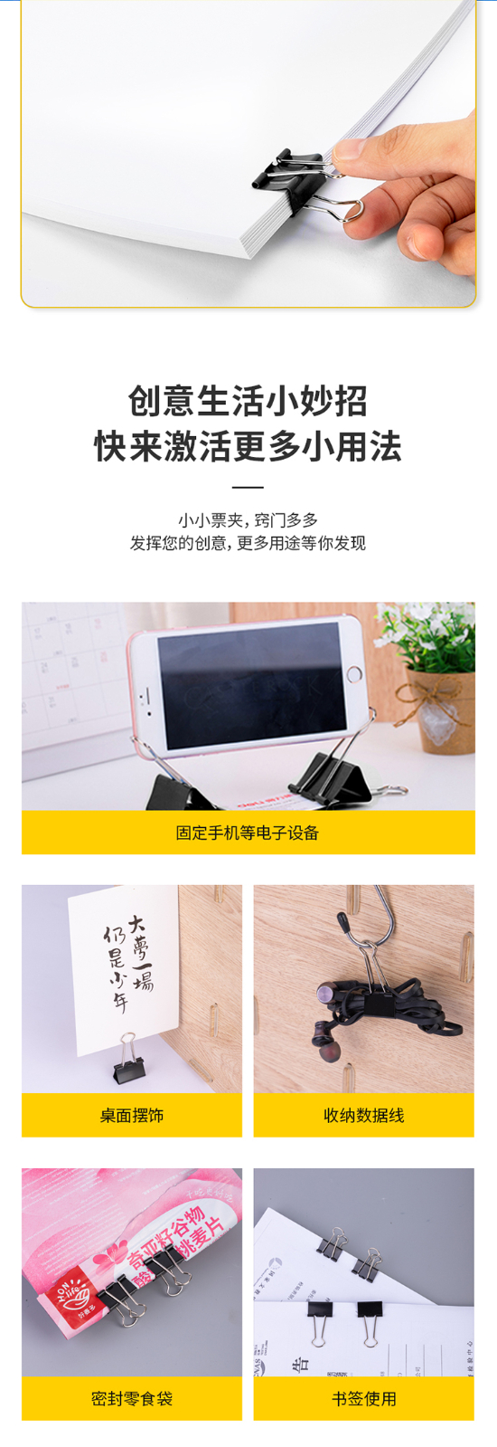 得力8565-5#黑色長尾票夾筒裝19mm*40只/筒