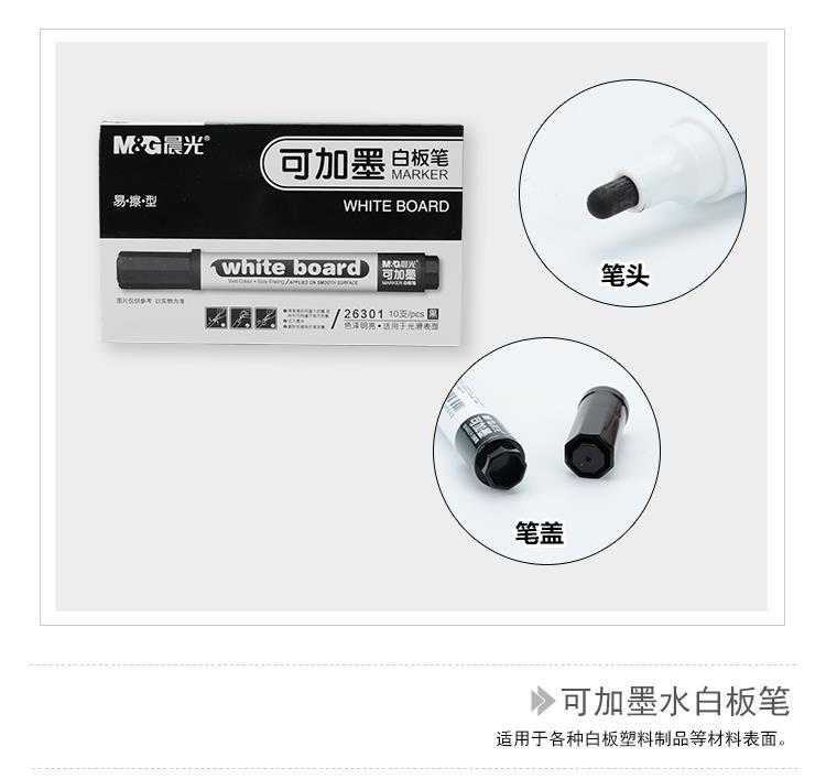 晨光15ml白板筆可加墨墨水AICW9602黑*20