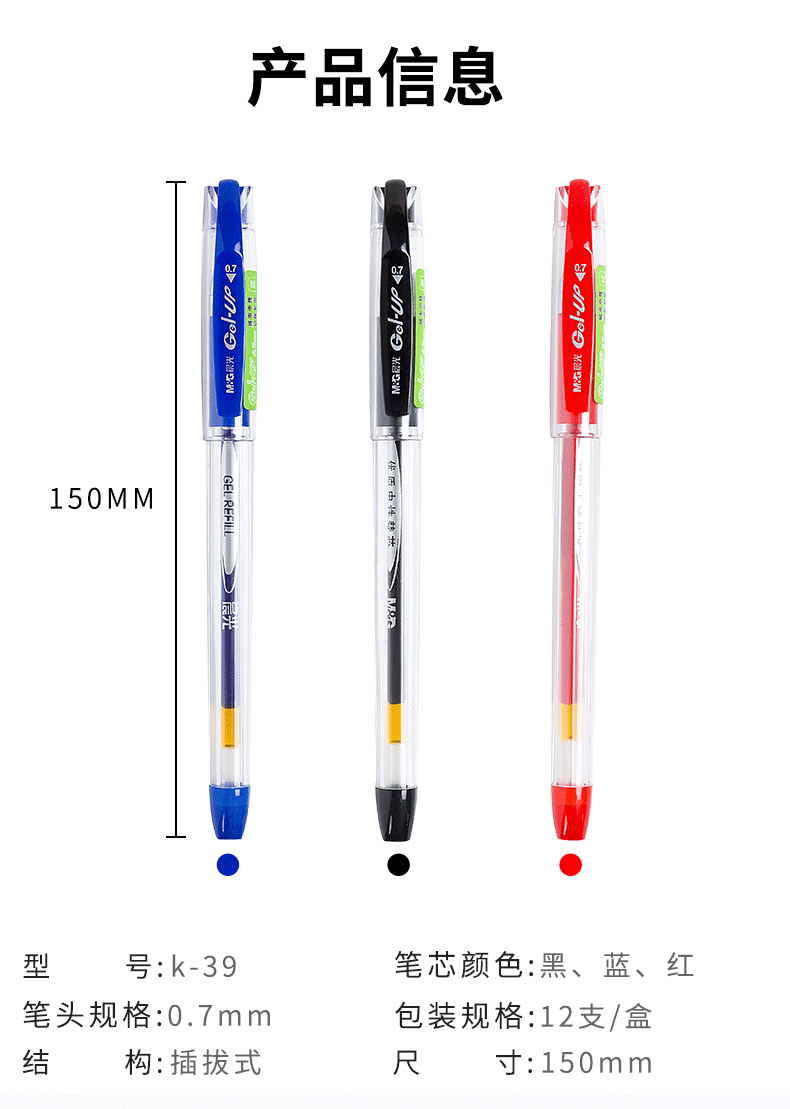 晨光中性筆簽字K39黑0.7*12