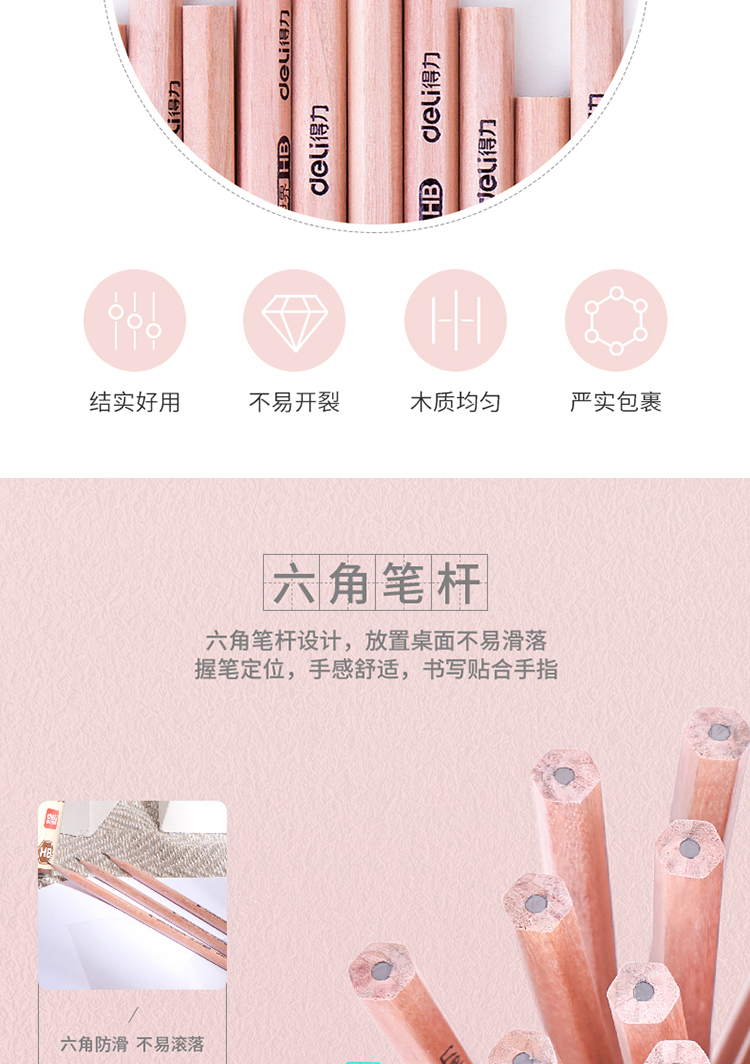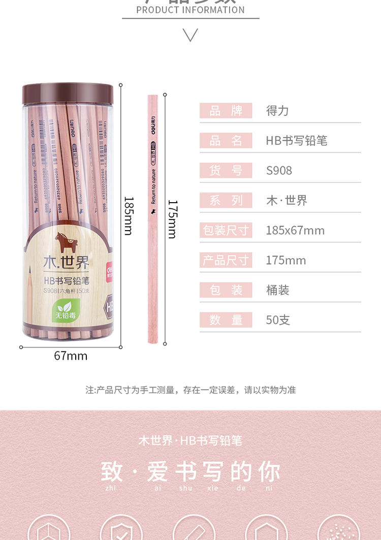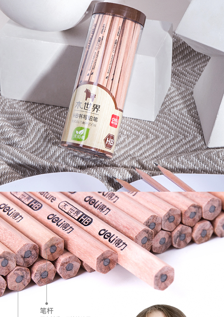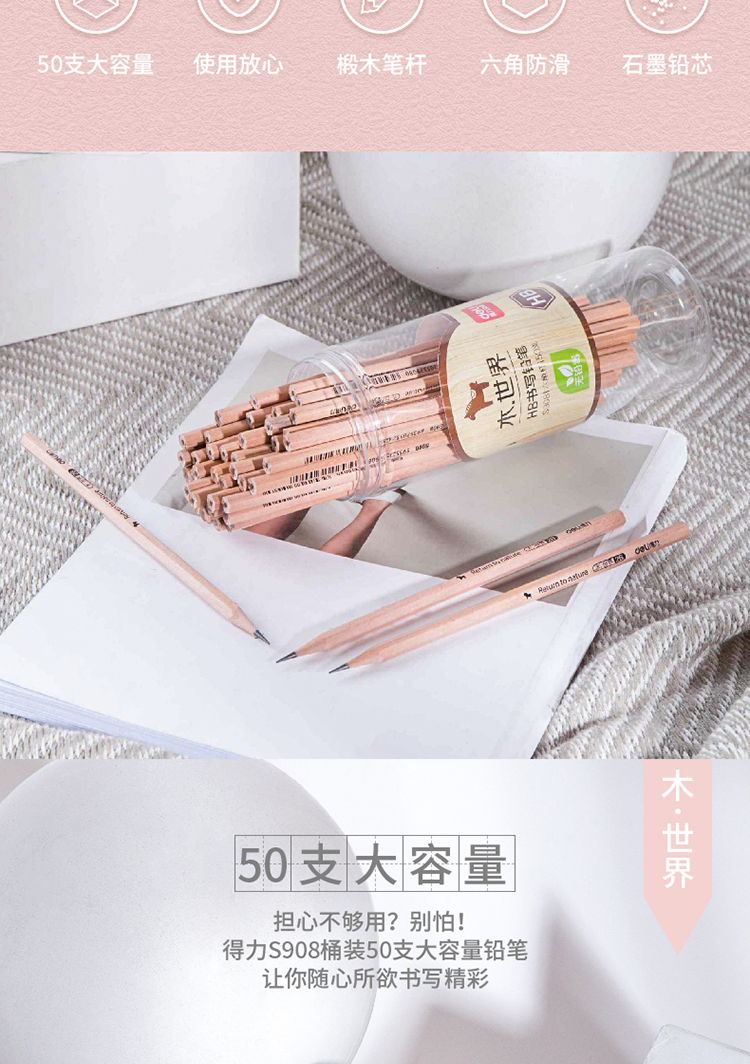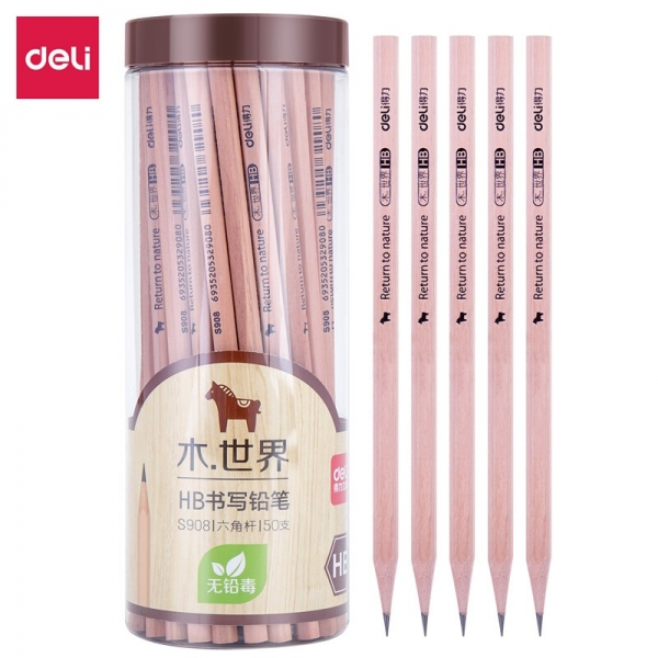 得力S908-HB書寫鉛筆(原木色)(50支/筒)