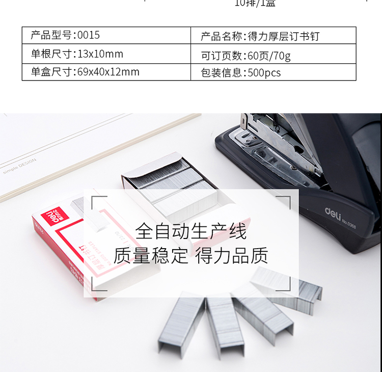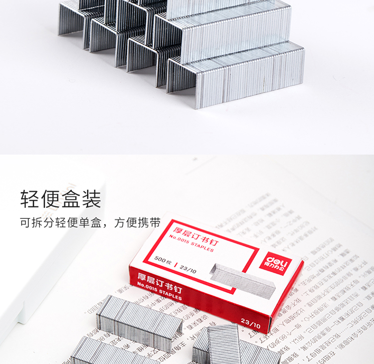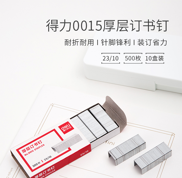 得力0015厚層訂書釘23/10(500枚/盒)*10