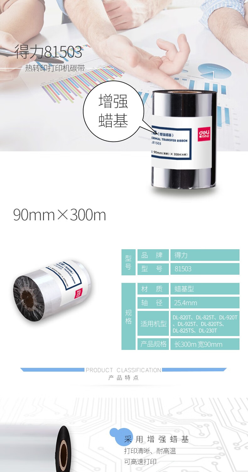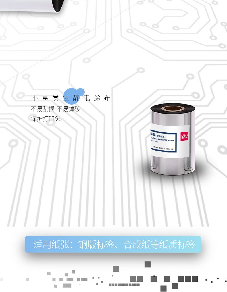 得力81523普通蠟基碳帶90mm*300m*6